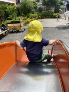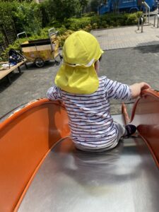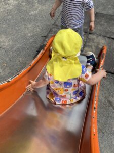 滑り台では保育者の支えがなく自分たちで階段を登ってシューっと滑るのがとっても上手です(*´˘`*)♥