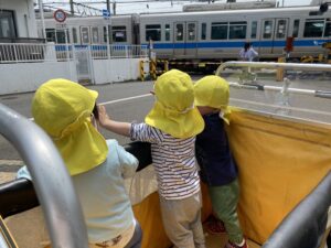 踏切がカンカンカンと音がなっただけでも「おっ!?」と振り返るほど電車が大好きなうみ組さん😊