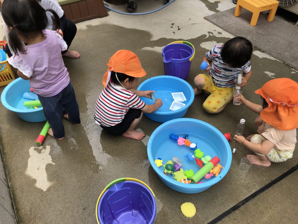 園に戻り水遊びをしながら、ヒマワリ🌻の種を植えてみました!