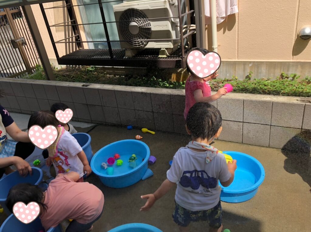 今日は梅雨時期の貴重な晴れ間☀️と暑さ😅で久々の水遊びができる!と子どもたちも大喜び❤