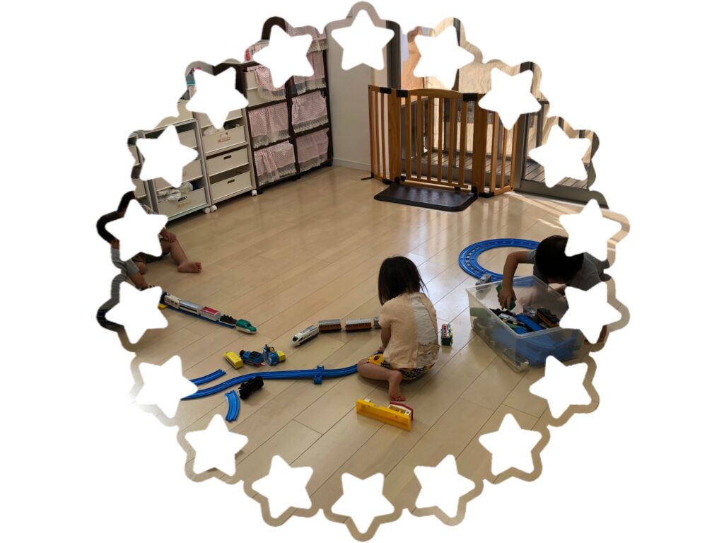 今までは、『手伝って!』が多かった、たいよう組さんですがお友だち同士、考えながらレールを繋げたり、電車を連結して遊んでいます❗️