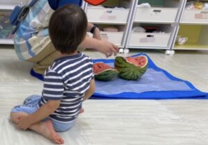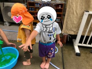 園に戻りテラスで久しぶりの水遊びをしました!