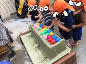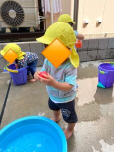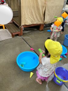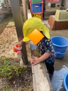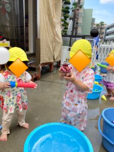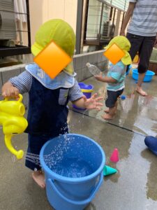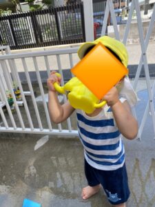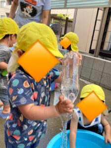 水鉄砲も先生に水を入れてもらえばお手の物!