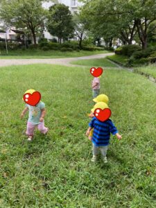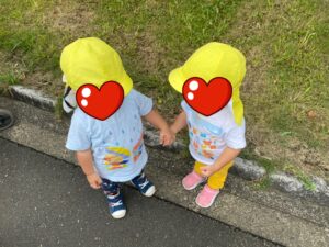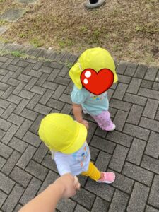 たいよう組のお兄さんお姉さんや「どこどこきのこ♪」の音楽に合わせて手を繋ぐ練習をしていたからかうみ組のお友だちとも手を繋いで歩く事が出来るようになりました🙏✨
