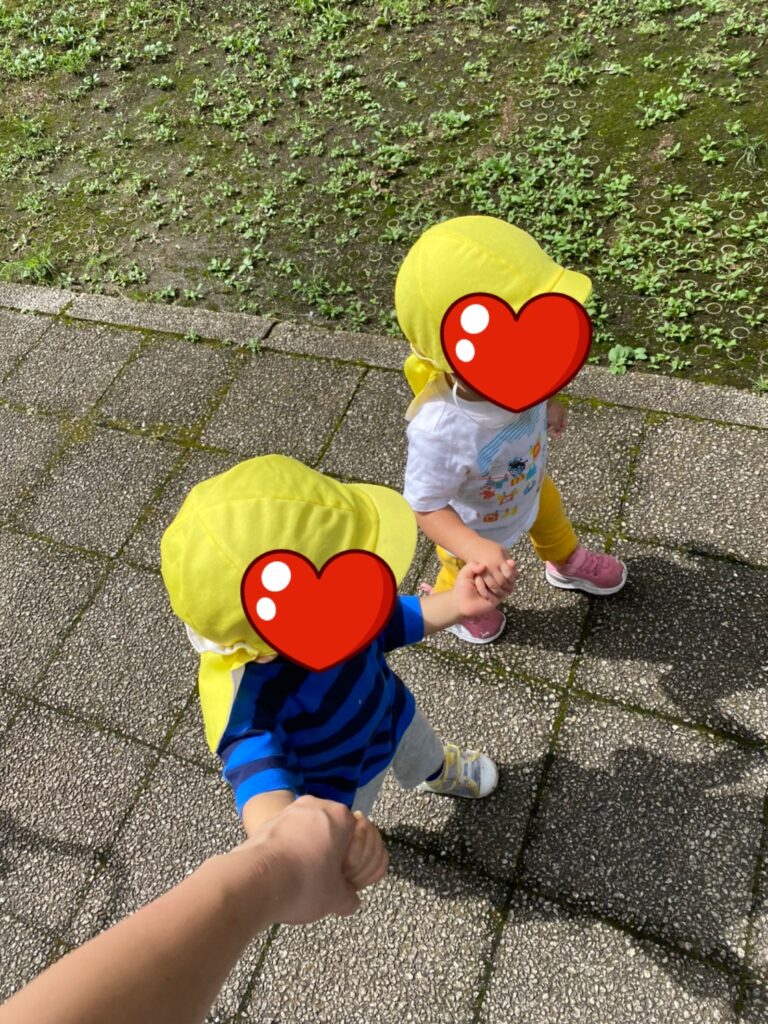 たいよう組のお兄さんお姉さんや「どこどこきのこ♪」の音楽に合わせて手を繋ぐ練習をしていたからかうみ組のお友だちとも手を繋いで歩く事が出来るようになりました🙏✨