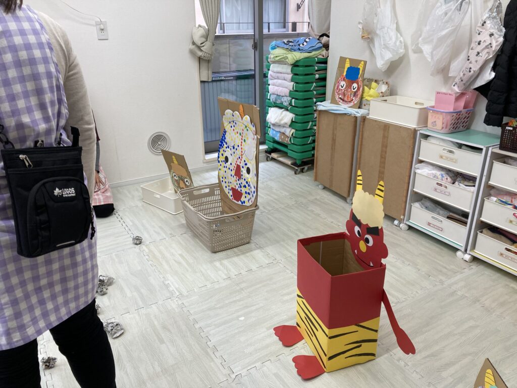 今年は124年ぶりに2月2日の節分だそうですね!そんな今日は、節分にちなんだ手遊びや歌、絵本を皆んなでみたり、鬼退治をして遊びました。