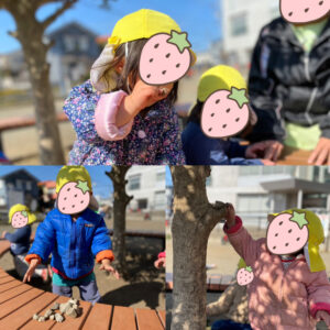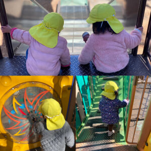 そんな天気にも負けず、お散歩用トレーナーや登降園時の上着(ジャンパー)を着て