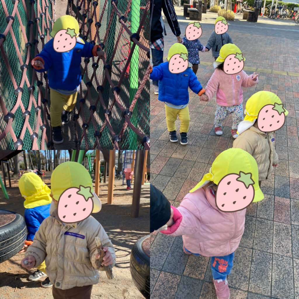 そんな天気にも負けず、お散歩用トレーナーや登降園時の上着(ジャンパー)を着て