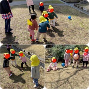 公園にボールを持っていったら投げる!蹴る!奪い合い!
