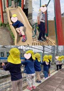 写真にはありませんが、桜がキレイだった時、風で散った花びらを先生の真似をしてキャッチしようとしたりと元気いっぱい💪✨