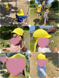 初めての公園、行き慣れた公園にも歩きながら「ありしゃん(いるかな?)…」「あっ!でんしゃ!キャー(ᐥ꒳ᐥ )」とお友だちとお話も進んでいます😍