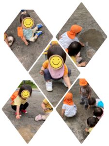 金曜日は…雨上がりの公園に行きました。砂場や滑り台を楽しんでいたみんな!すると…