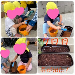 お散歩前にみんなで見に行き「おっきくなってる!」と大喜びです(ᐥ꒳ᐥ )