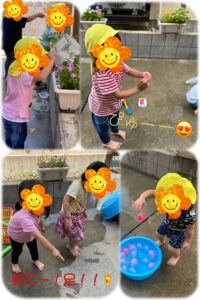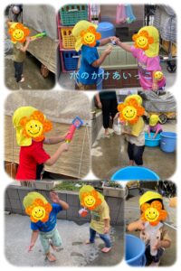 水遊び中でもお花に水をかけてあげる優しいたいよう組さん🥰