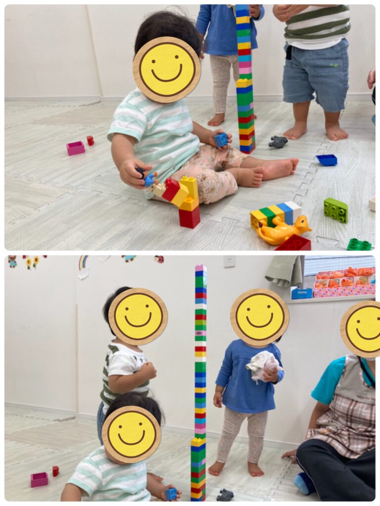レゴブロックも大人気です。自分たちの背よりも高く積み上げて遊んだり、動物たちを並べて動物園にして遊んでいます。