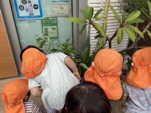 アゲハ蝶の幼虫さんを発見❣️みんなでジーッと観察させてもらいました。