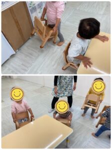 自分で座る椅子を自分で、『よいしょ』と可愛らしい声をかけながら机まで運び、座りやすいように向きも自分で変えています!