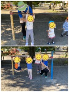 鉄棒に挑戦!ぶら〜んと上手にぶら下がって楽しんでいます♪