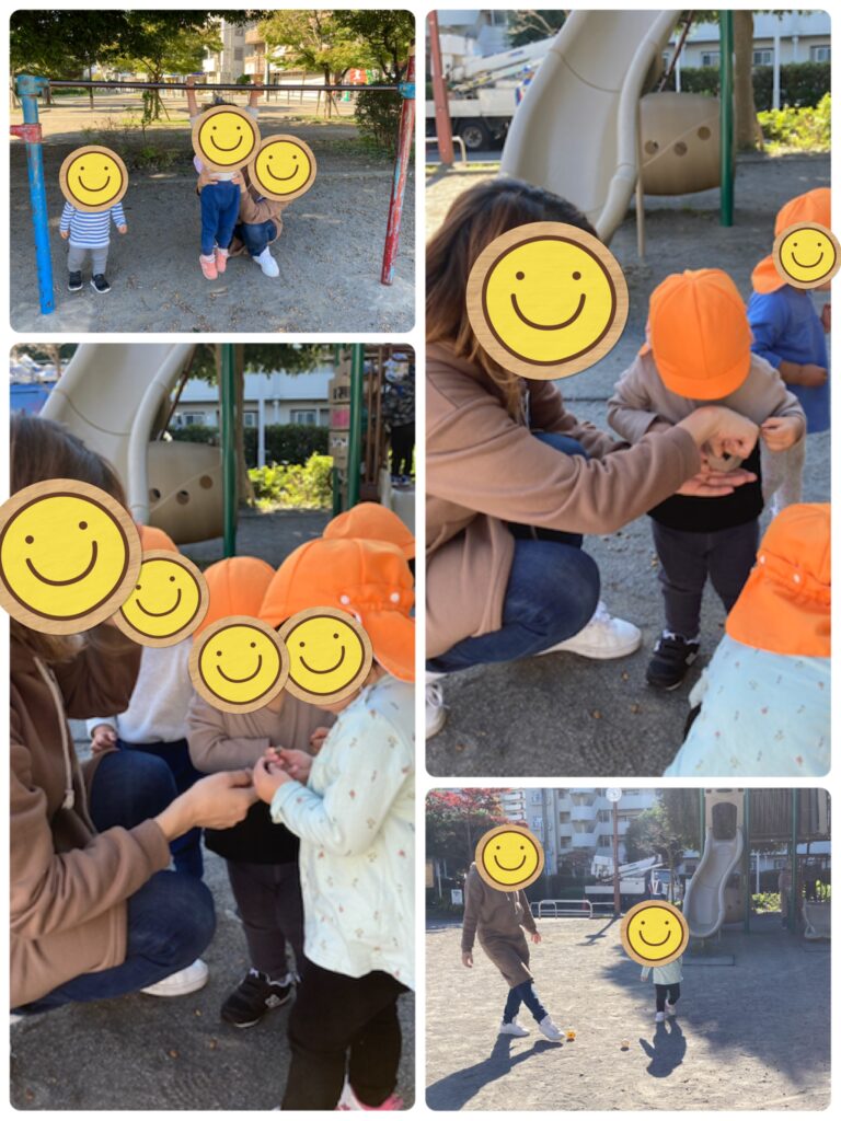どんぐりを拾ったりボールをしたり、砂場でケーキを作ってもらったり、たくさん遊んでいただきました🥰