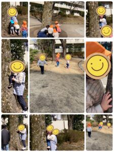 アリさんが目を覚まして外に出ているのを見つけて大喜びの うみ組、そら組さん🥰アリさんを見ていたら木ともお友達に…