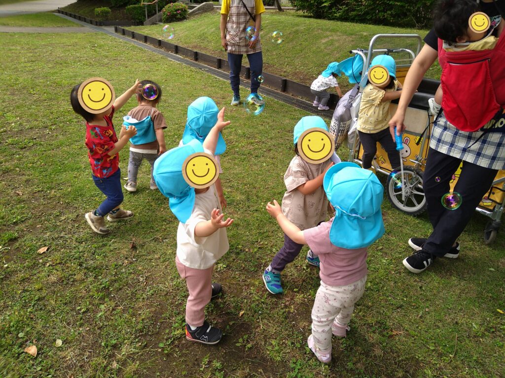 お散歩中、紫陽花の蕾を見かけるようになってきました。うみ・そら組さんは、元気いっぱいに遊んでます。