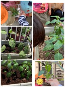 先週買ってきた野菜苗もプランターへ植えることができました。もう赤ちゃんナスとピーマンが育ってきていて、水やりのお手伝いが楽しみな たいよう組です!