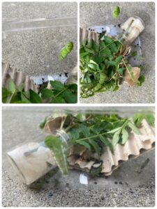 そして、S先生がアゲハチョウの幼虫を持ってきてくれました。