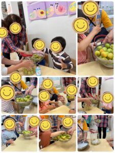 梅の実をもぎ体験❗️みんな真剣に参加してくれました。梅は良く洗い乾かし綺麗な手で瓶の中へ。