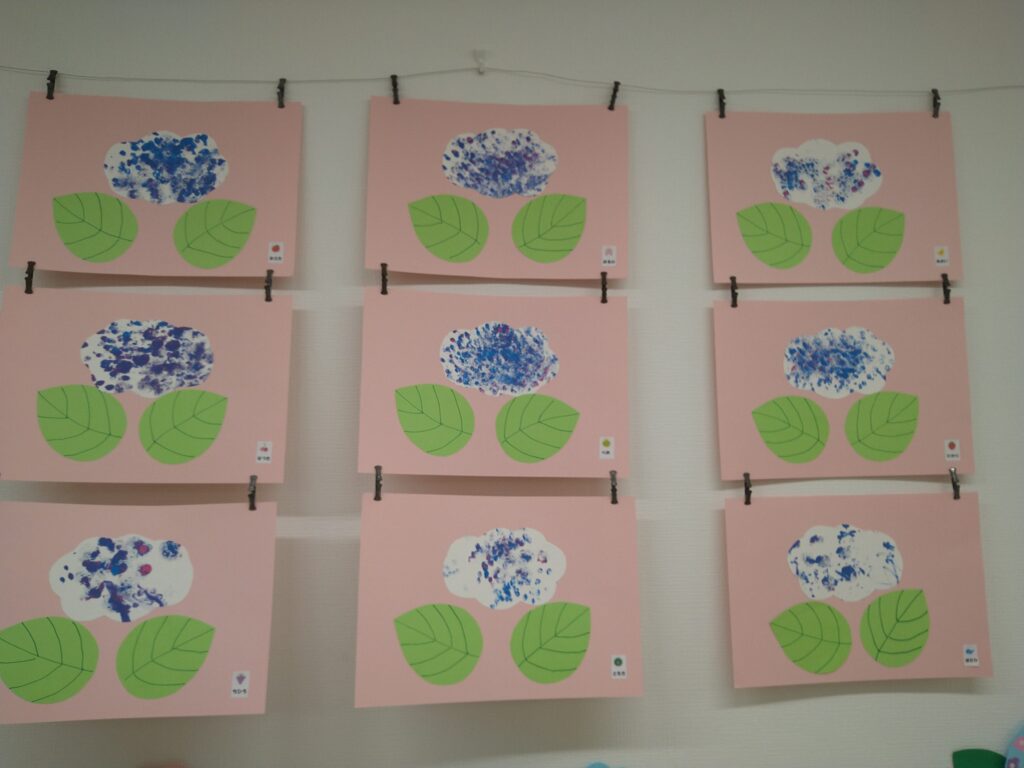 はじめてのものに、戸惑う姿も見られましたが、指を絵の具につけるとスタンプのように押して楽しんでくれました。