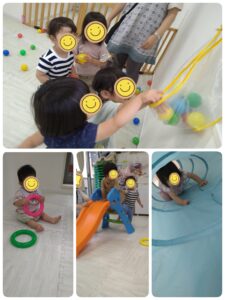 ボールやトンネル、滑り台など、好きな遊びを楽しみました。