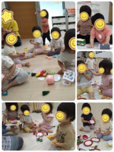 おままごとをして、お友達に「どうぞ」と食べさせてあげる姿も見られましたよ🍴