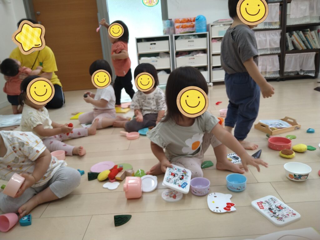 おままごとをして、お友達に「どうぞ」と食べさせてあげる姿も見られましたよ🍴