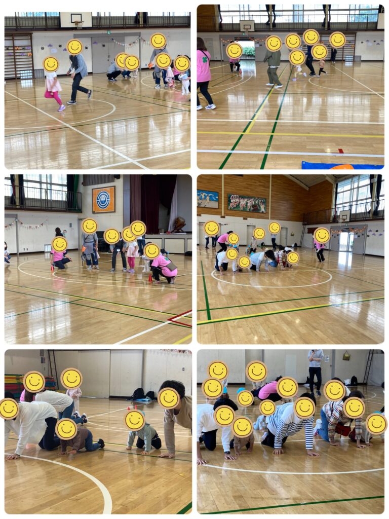近隣の小学校の体育館をお借りすることができ、おはなではじめての試み親子ミニレクを行いました。