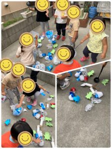 飛石でジャンプを楽しんだ後は自然とバスごっこになり、お芋掘りごっこを楽しみました。