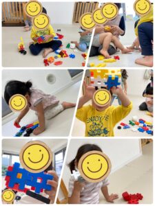 レゴ、ソフトブロック、お花ブロック…色々な種類のブロックを使い楽しんでいます。