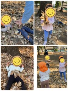秋ならではの遊びが楽しめる季節❣️落ち葉のお布団やお風呂に入ってみたり、落ち葉のシャワーをして楽しんでいます!