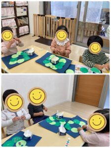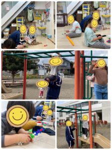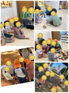 お天気が不安定で、外に出ると雨が降ってきてしまい、お外では少ししか遊べませんでしたが、お姉さん先生と一緒に楽しく過ごしました♪