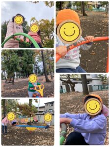 公園では、ジャングルジムで遊ぶことがブームな子とバネ馬やシーソーがブームな子と分かれてたくさん遊びました