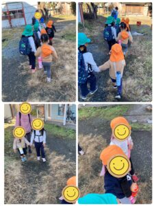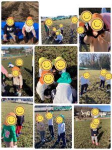 畑では、保育者と追いかけっこを楽しんだり、よつばのお友だちに『氷鬼しよ❣️』と誘われて遊び方を教えてもらったり…。(この日は、氷鬼はちょっと難しかったので、今度練習してみようとおもいます!)