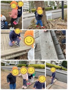 葉っぱの下には、ダンゴムシではなく丸まらないワラジムシを発見!春はすぐそこに来ているようです。残り1ヶ月、たっぷり遊んで楽しい思い出をたくさん作っていこうと思います♪