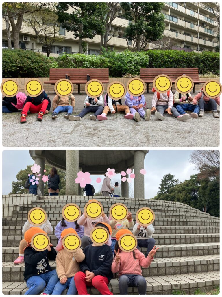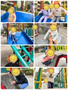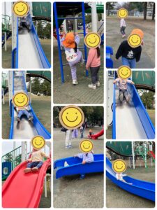 中央公園で遊ぶ前に記念撮影…なかなか全員が前を向いてくれずに先生たちは悪戦苦闘🤣大きな滑り台を前にしたら、遊びたいに決まってますよね!