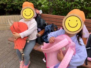 お家の方に作っていただいた 🍙おにぎりと水筒を自分のリュックの中に入れいざ出発♪