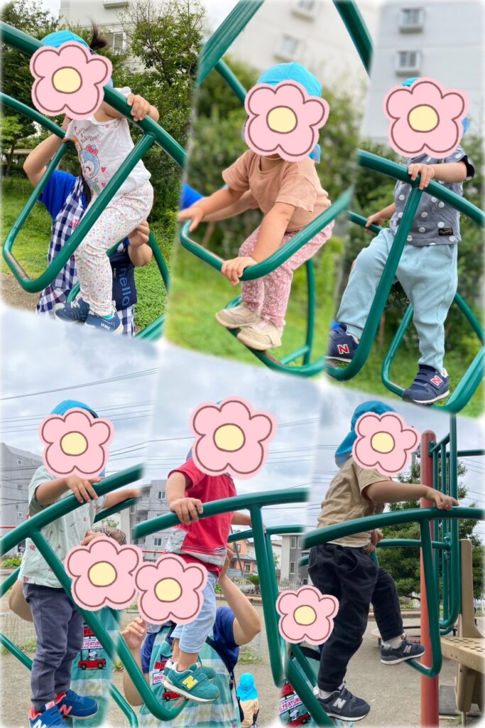 先生に支えてもらったり、「見ててね」と補助なしで登れるようになったりと上手に登れていました👏✨