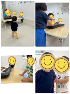 キーボードの音楽に体を揺らして楽しんだり…キーボードから音が出てくるのが不思議なようでキーボードの側から離れないお友だちも😊音楽遊びの最後は、先生と一緒にミニ演奏会をしました🎶