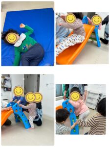 3月入ってからはお天気の悪い日も多かったですが、トンネルや滑り台、マットを出して楽しんだり、ブロックや車、電車のおもちゃを使って遊んでいます。