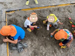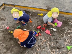 砂場では好きな型に砂を固めて…