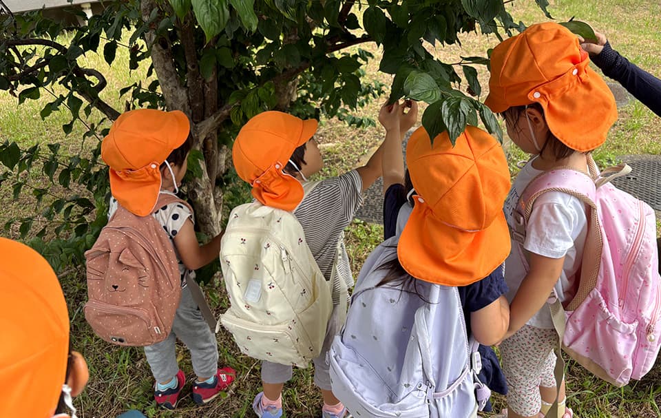 お散歩で小さな虫に出会ったら、じっくり観察する時間を設けたり、帰園後に図鑑を開いて学びを深めたり。