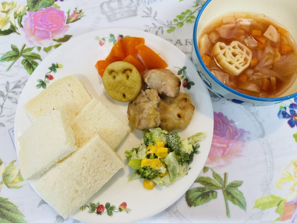 お楽しみ給食 ローストチキン 人参の甘煮 ブロッコリーサラダ ミネストローネスープ 12月23日