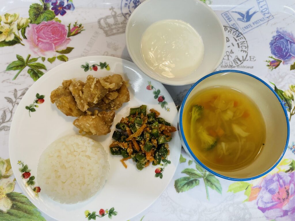 リクエスト給食 唐揚げ いんげんの胡麻和え 3月24日