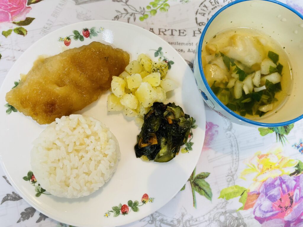 魚の揚げ煮 粉吹き芋 わかめの酢の物 11月6日